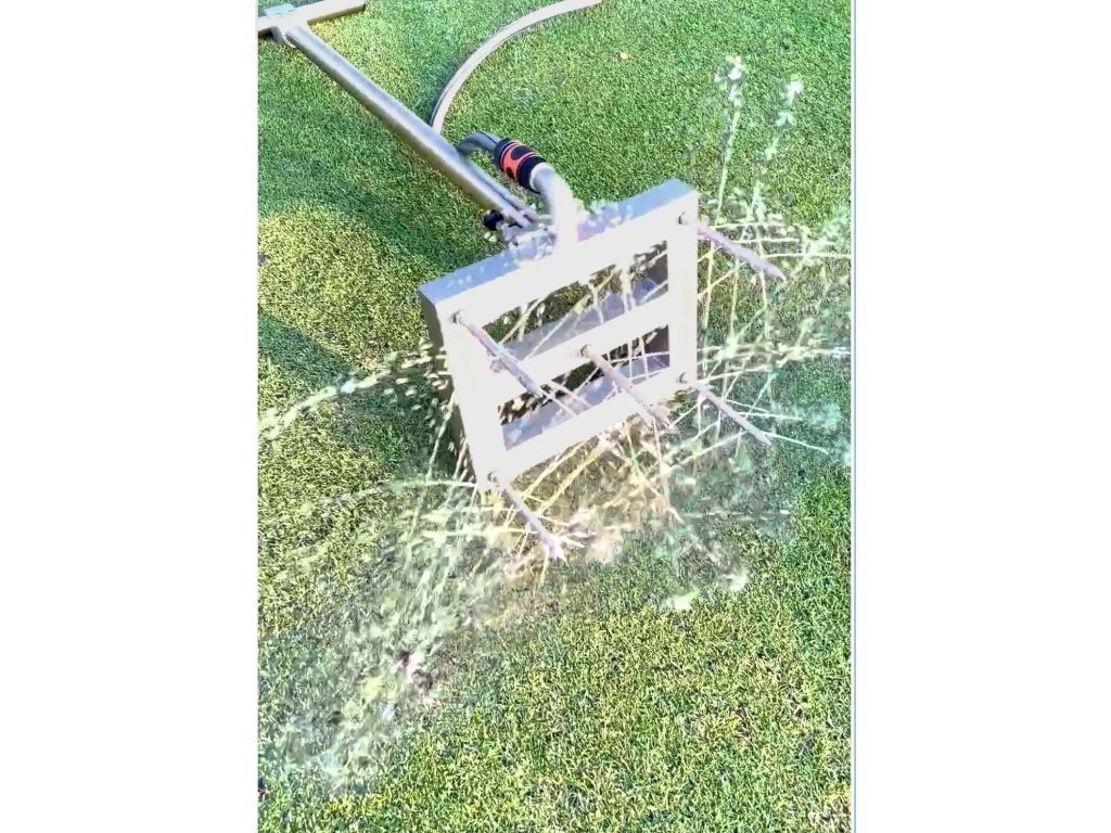 Optimální pro rychlé a efektivní zavlažování vodoodpudivých, suchých míst na trávníku.,V porovnání s jednoduchými jednohrotými systémy byl náš systém již úspěšně testován a používán na různých golfových hřištích. 5 injekčních hrotů má za následek mnohem rovnoměrnější zavlažování při výrazně menším poškození trávníkového porostu. Zvláště při nízkých výškách sečení kolem 15 mm nebo méně, je to velkou vizuální výhodou a benefitem.