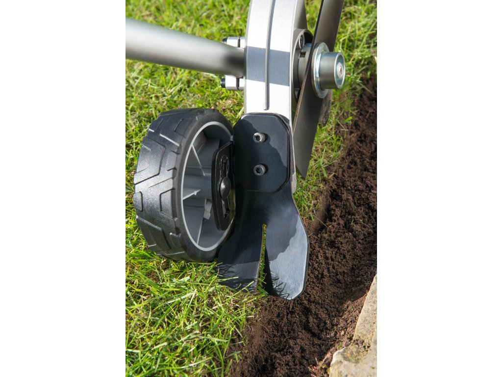 Tento pracovní nástavec je vybaven ocelovým řezným nožem o průměru 20 cm a rychlým nastavením hloubky řezu a snadno s ním docílíte přesného tvarování a perfektního začištění okrajů trávníku kolem přechodů na jiný druh povrchu.Přesné, pohodlné a hlavně rychlé začištění a zarovnání trávníku v přechodech trávníku na jiné povrchy snadno docílíte při použití nástavce se zařezávačem trávníku. Pracovní nůž o průměru 200 mm zařezávače je vyroben z vysoce odolné oceli se otáčí ve svislé rovině a zařezává do trávníku dle vámi zvoleného tvaru a směru. Hloubku řezu lze plynule nastavit tak, aby vyhovovala hloubce kořenového systému Vašeho trávníku. Značně Vám ulehčí dlouhodobou a otravnou manuální práci se zarovnáváním hrany travních ploch pomocí různých rýčů a škrabek. Nástavec je opatřen bezpečnostním ochranným krytem, tak, aby obsluha byla dostatečně ochráněna proti případnému odlétnutí kamínku a pod. Zavěšením celého stroje na jednostranný nosný popruh pohonné jednotky je práce se zařezávačem trávníku velmi snadnou a pohodlnou záležitostí.